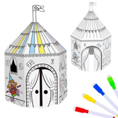Namiot cyrkowy z tektury kartonowej do kolorowania to doskonały sposób na długie godziny zabawy, a także rozwój zdolności manualnych, wyobraźni oraz kreatywności dla malucha.