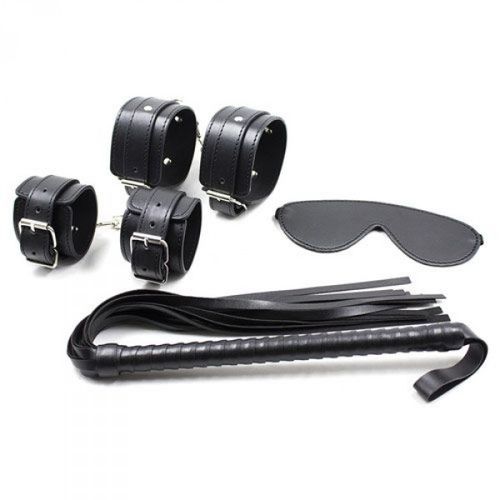 Zawierai: maskę na oczy, kajdanki, kajdanki na kostki i bat