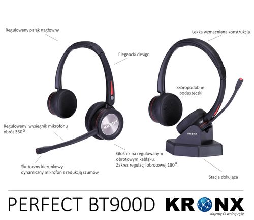 Idealnie dopasowanie dzięki lekkiej, ergonomicznie zaprojektowanej konstrukcji, regulowanemu pałąkowi nagłownemu i wysięgnikowi mikrofonu.