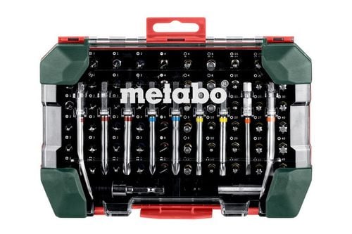 Bity ze stali chromowo-wanadowej (S2) z oznaczeniem barwnym umożliwiającym szybkie i łatwe odnalezienie właściwego bitu magnetyczny uchwyt szybkowymienny do bitów + magnetyczny uchwyt do bitów wytrzymałe pudełko wysokiej jakości w specjalnym wzornictwie Metabo z wysuwaną eurozawieszką