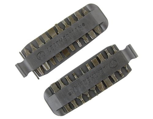 Zestaw 21 dwustronnych końcówek wkrętaków pasujących do gniazd narzędziowych w następujących modelach Leatherman: