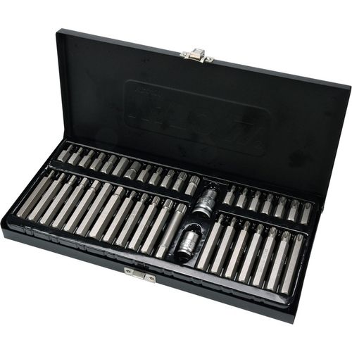 Zestaw kluczy YATO Torx, Hex, Spline YT-0400 wyróżnia się solidną konstrukcją i starannym wykończeniem, które zapewniają niezawodne chwytanie i obracanie nawet w najbardziej wymagających warunkach. Zawiera bogaty wybór bitów Torx (T20, T25, T30, T40, T55) oraz sześciokątnych metrycznych (4, 5, 6, 7, 8, 10, 12 mm), co pozwala na precyzyjne dopasowanie do różnych śrub i śrubokrętów, gwarantując efektywność i wytrzymałość na co dzień.