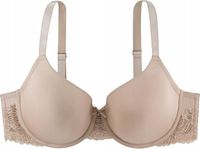 Dla gładkiego wyglądu z miękkim mikro wzorem w kolorze skóry; szeroka koronka nad mostkiem i dolnymi skrzydłami; ten łatwy do noszenia element jest wyposażony w kokardkę z ozdobami ze strasu.