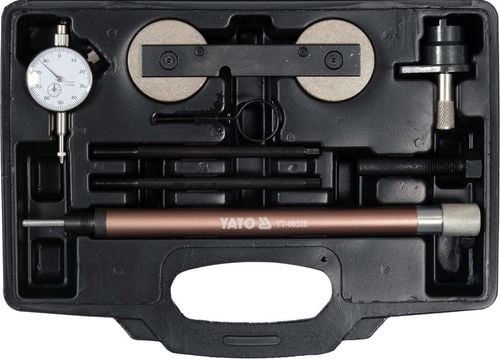 Zawartość zestawu: zegar|wskaźnik TDC|narzędzie do osiowania wałka rozrządu|pin napinający|trzpień ustalający położenie wału korbowego|piny prowadzące