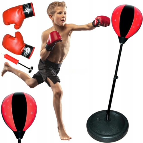Zestaw bokserski to świetny sposób, by wprowadzić dziecko w świat sportu i boksu, zapewniając przy tym mnóstwo ruchu i zabawy. W komplecie znajduje się samo pionizująca gruszka na sprężynie z regulowaną wysokością (od 70 do 106 cm) oraz para uniwersalnych rękawic bokserskich, idealnych zarówno dla chłopców, jak i dziewczynek.