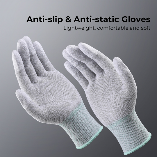 Do zestawu czyszczącego K&F Concept dołączono również specjalne antystatyczne rękawiczki. Pomogą lepiej ochronić Twój sprzęt przed zabrudzeniami i pyłkami, zapewniając jednocześnie stabilny chwyt dzięki antypoślizgowym właściwościom. Dzięki nim czyszczenie matrycy i innych komponentów sprzętu foto-video staje się jeszcze bezpieczniejsze i znacznie skuteczniejsze.