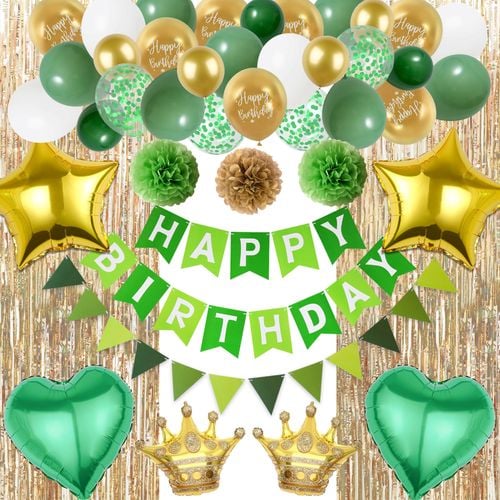Zestaw dekoracji urodzinowych w kolorach zielonym, złotym i białym to uniwersalne rozwiązanie na każdą imprezę, niezależnie od wieku czy płci solenizanta. Dzięki eleganckiej kolorystyce oraz bogatej zawartości, pakiet ten pozwala na stworzenie spójnej atmosfery i nadanie uroczystości wyjątkowego charakteru. Centralnym elementem dekoracji jest klasyczny baner z napisem HAPPY BIRTHDAY, który doskonale komponuje się z balonami foliowymi w kształcie gwiazd i serc, balonami lateksowymi oraz delikatnymi pomponami z bibuły. Całość uzupełnia girlanda oraz ozdobne korony, które dodają aranżacji lekkości i blasku. Ta harmonijna kompozycja kolorystyczna sprawdza się zarówno w tradycyjnych wnętrzach, jak i podczas przyjęć organizowanych w ogrodzie, tworząc estetyczne tło do pamiątkowych zdjęć oraz wspólnych chwil z gośćmi.