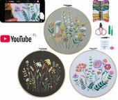 ✔️Zawiera wszystkie niezbędne akcesoria do haftowania, w tym 3 wzory kwiatowe, muliny, igły, nożyczki, nawlekacz i separator szwów.