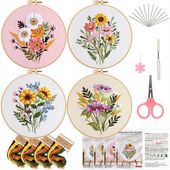 Ten wysokiej jakości zestaw do haftowania zawiera wszystko, czego potrzebujesz, aby rozpocząć własną przygodę z muliną. Cztery piękne wzory kwiatowe, płótna, mulina oraz akcesoria pozwolą Ci stworzyć niepowtarzalne dzieła sztuki rękodzielniczej.