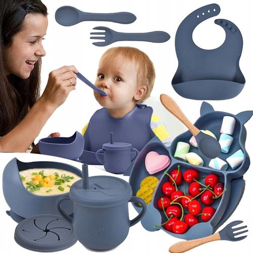Zestaw wykonany jest w całości z atestowanego silikonu spożywczego i drewna, co gwarantuje brak szkodliwych substancji oraz najwyższy poziom bezpieczeństwa dla Twojego dziecka. Elementy są odporne na wysokie i niskie temperatury, więc można je myć w zmywarce lub podgrzewać w kuchence mikrofalowej.