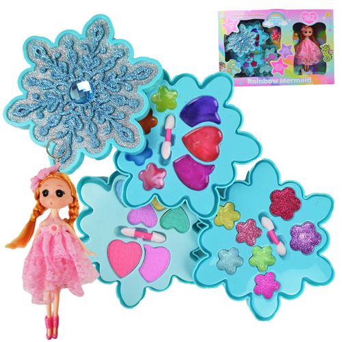 Zestaw Rainbow Mermaid to kompletny kompakt kosmetyczny zaprojektowany specjalnie dla dzieci. Zawiera bezpieczne kosmetyki w postaci kolorowych cieni do powiek, błyszczyków i innych akcesoriów do makijażu. Produkty są nietoksyczne i łatwe do zmycia wodą. W zestawie znajduje się również urocza lalka syrenka w różowej sukience, która może służyć jako inspiracja do stylizacji. Kompakt ma praktyczne lusterko i jest wykonany z wysokiej jakości materiałów. Idealny do zabawy w domu lub jako prezent na specjalne okazje.