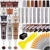 Zestaw naprawczy do samodzielnej naprawy mebli drewnianych, podłóg, paneli, schodów, futryn i wielu innych. Zestaw pozwala zniwelować niewielkie odpryski na elementach mebli i podłóg nienarażonych na znaczną eksploatację.