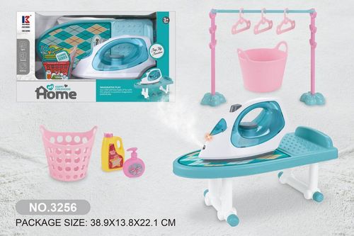 Żelazko w zestawie to nie takie zwykłe żelazko, gdyż można je napełnić wodą, a podczas zabawy dziecko może nacisnąć odpowiedni przycisk, aby wydobyć parę wodną, dokładnie tak, jak w prawdziwym żelazku! To świetny sposób, aby dzieci mogły udawać, że prasują ubrania tak jak dorośli.