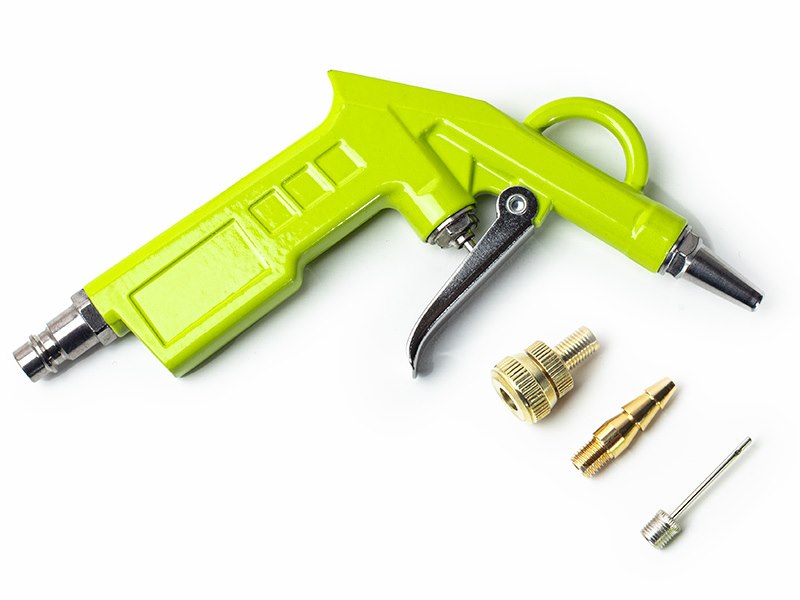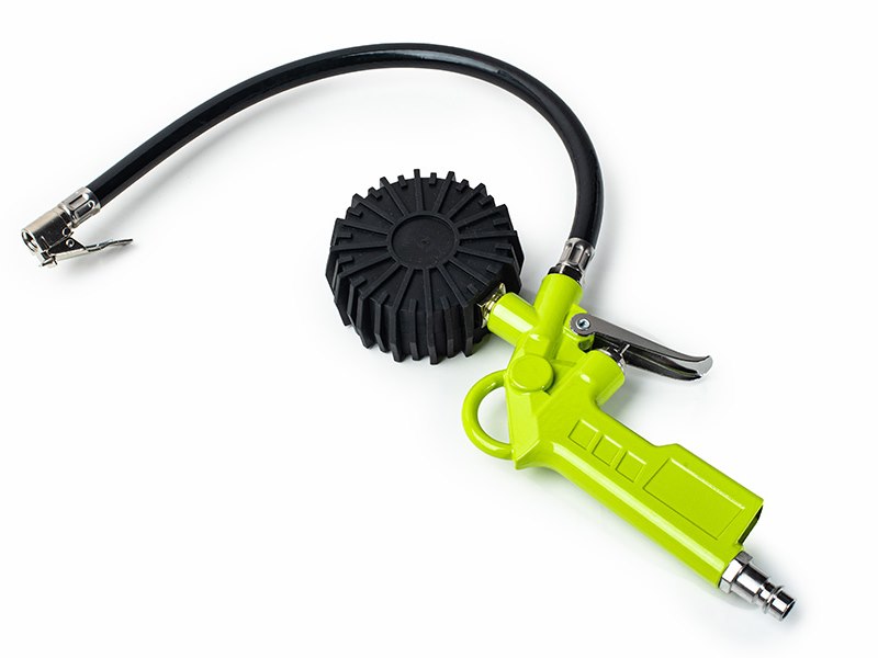 Pistolet do pompowania kół z manometrem. Świetnie sprawdza się podczas pompowania i sprawdzania ciśnienia. Posiada czytelny zegar, pozwalający na pomiar ciśnienia powietrza. Pistolet do przedmuchiwania przeznaczony jest do czyszczenia urządzeń i powierzchni przy pomocy sprężonego powietrza. Zestaw zawiera 3 końcówki do pompowania pomocne przy pompowaniu pontonów, piłek, materaców itp.,