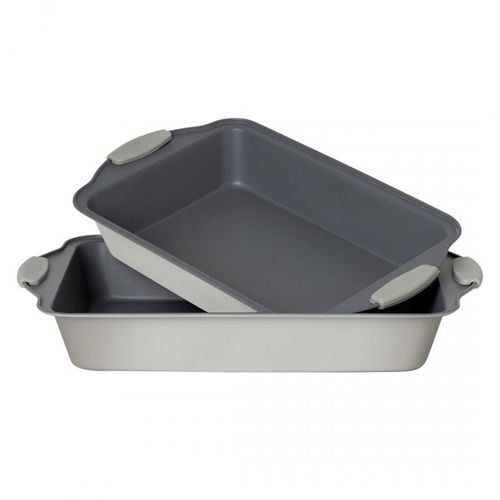 Zestaw form do pieczenia firmy BERLINGERHAUS z serii ASPEN COLLECTION. Wykonana z blachy stalowej, pokrytej nieprzywierającą powłoką w kolorze czarnym. Formy wyposażone w silikonowe nakładki na uchwyty.
