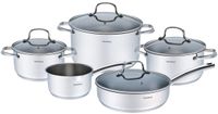 Wspaniały, 9-częściowy komplet garnków wysokiej jakości. Zestaw wykonany z najwyższej jakości stali nierdzewnej 18/10. Stal tego typu gwarantuje długą żywotność zestawu i odporność na powstawanie plamek i przebarwień. Patelnia z nieprzywieralną powłoką marmurkową. Produkt renomowanej marki KLAUSBERG.