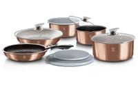 Najwyższej jakości zestaw garnków i patelni aluminiowych z unikalną powłoką granitową oraz odpinaną rączką w systemie Click it. Produkt renomowanej marki BERLINGERHAUS z linii Rose Gold. Przystosowane do wszelkiego typu kuchenek, także indukcyjnych.