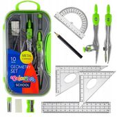 ✅ Elementy zestawu: cyrkiel, ekierka, linijka, kątomierz, inne