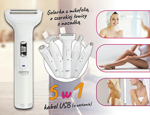 Precyzyjny i elegancki zestaw do usuwania niechcianych włosków z różnych części ciała. Dzięki dwóm golarkom w tym jednej z mikrofolią i trzem końcówkom trymującym może on zostać wykorzystany zarówno do golenia nóg, wyrównania brwi lub stylizacji okolic bikini. Do zestawu dołączony jest także pędzelek do czyszczenia urządzenia. Ładowanie urządzenia odbywa się poprzez kabel USB, dzięki czemu zestaw jest idealny do zabrania ze sobą w podróż.