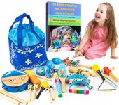 Ten starannie wyselekcjonowany zestaw 16 różnorodnych instrumentów muzycznych został zaprojektowany z myślą o kompleksowym rozwoju małego muzyka. Każdy element zestawu, od klasycznego trójkąta po kolorowe marakasy, został wykonany z najwyższej jakości materiałów, zapewniając autentyczny dźwięk i trwałość na lata intensywnej zabawy.