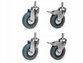 Ten wysokiej jakości zestaw jezdny z 4 kołami o średnicy 75 mm z hamulcem wyróżnia się solidną konstrukcją i precyzyjnym wykonaniem, zapewniając płynny ruch nawet pod obciążeniem do 180 kg. Ocynkowana stalowa piasta i szara gumowa opona gwarantują wyjątkową trwałość, co pozwala na bezawaryjne użytkowanie w wymagających warunkach.