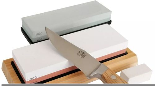 Zestaw kamieni do ostrzenia o czterech różnych ziarnistościach pokrywa całkowite zapotrzebowanie na ostrzenie noży. Kamień do obciągania umożliwia szlifowanie kamienia szlifierskiego, jeśli nie jest on już w 100 procentach płaski z powodu bardzo częstego użytkowania.