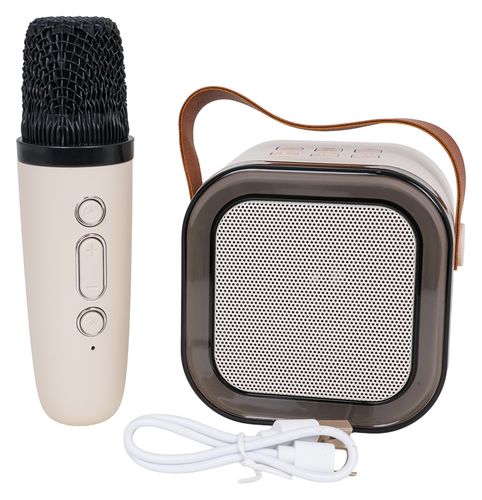 | Zestaw karaoke mikrofon i głośnik dla dzieci od trzeciego roku życia i dorosłych. Ten przenośny zestaw nie zajmuje dużo miejsca i jest lekki, więc można go zabrać wszędzie ze sobą. Niech nie zmyli was ten niewielki gabaryt, gdyż ten zestaw posiada bardzo wysoką jakość dźwięku, a także tworzy oszałamiające wrażenie wizualne dzięki oświetleniu RGB. Zaawansowana technologia dekodowania MP3 zapewnia czysty i mocny dźwięk. Głośniczek posiada układ redukcji szumów DSP, dzięki czemu dźwięk jest głośniejszy i pełniejszy. Bluetooth zapewnia stabilne połączenie. Zestaw jest kompatybilny z telefonami komórkowymi, telewizorami, tabletami, komputerami i innymi urządzeniami oraz z różnymi popularnymi aplikacjami. Głośnik posiada wejście na kartę 64G-TF, słuchawki i ładowarkę typu C. Wysokiej jakości uchwyt skórzany jest praktyczny i wytrzymały. Do wyboru mamy 5 efektów świetlnych LED, które synchronizują się z muzyką, tworząc niesamowite wrażenie wizualne. Krótkie naciśnięcie przycisku na głośniku zmienia efekty świetlne, przytrzymanie przez dwie sekundy wyłącza diody LED. Wskaźnik naładowania ułatwia używanie, a wytrzymała obudowa, poziom ochrony IPx3 zapewnia ochronę przed deszczem i trwałość.
