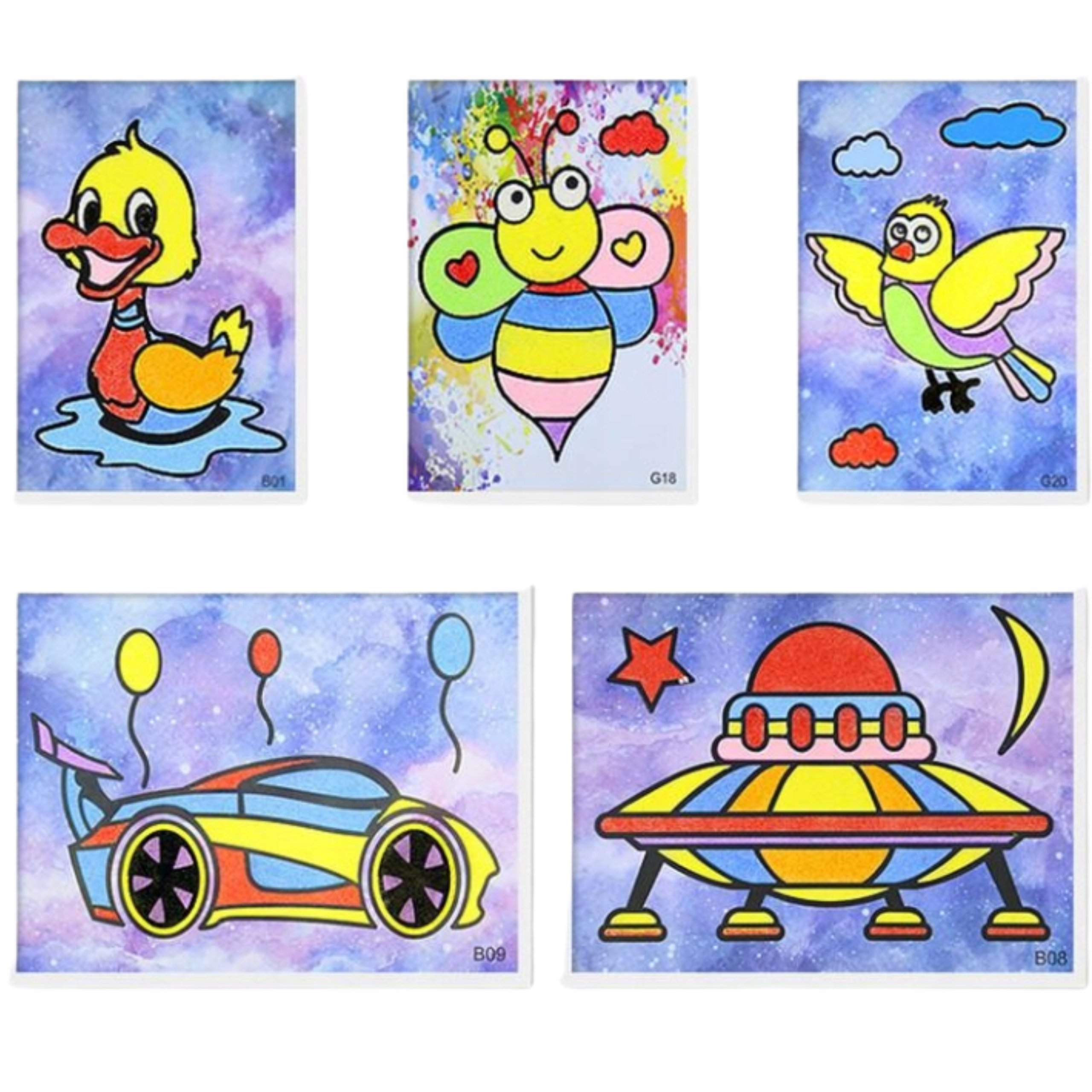Szukasz pomysłu na twórczą i rozwijającą zabawę dla dziecka? Kolorowy zestaw do malowania piaskiem to doskonała propozycja! Dzięki niemu Twoje dziecko nie tylko rozwinie wyobraźnię i zdolności manualne, ale także spędzi czas w sposób kreatywny i pełen radości. Wystarczy odkleić warstwę zabezpieczającą na obrazku i posypać ją kolorowym piaskiem – efekt jest natychmiastowy, a zabawa gwarantowana!