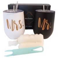 Zestaw Kubków do wina Mr & Mrs. Towar powystawowy, outletowy, stoki magazynowe. Urządzenia mogą posiadać opakowania zastępcze lub oryginalne. Zawartość pudełka: 2 x kieliszki do wina z pokrywką, 2 x słomka, 2 x szczotki do słomki, 1 x szczotka Kubki do wina Mr & Mrs o unikalnym designie to świetny prezent ślubny dla par, panny młodej i pana młodego, przyjaciół, kolegów, wieczoru panieńskiego, rocznicy itp. Konstrukcja pokrywy: Nasze trwałe kubki do wina mają przezroczystą pokrywkę z pierścieniem uszczelniającym, który zapobiega wyciekaniu napojów w przypadku przewrócenia się kieliszków. Izolacja dwuścienna i próżniowa: Kubki do wina ze stali nierdzewnej z podwójnymi ściankami i technologią izolacji próżniowej mogą utrzymywać płyny w niskiej i niskiej temperaturze przez długi czas, gorąca kawa ok. 3 godziny ciepłe, zimne napoje ok. 9 godzin na zimno, można używać o każdej porze roku. Wysokiej jakości materiał: Nasze kieliszki do wina z pokrywką wykonane są z najwyższej jakości odpornej na rdzę i bezpiecznej stali nierdzewnej, bardzo wytrzymałej, trwałej, odpornej na rdzę i nietłukące, bez ostrego zapachu. Uwagi dotyczące kubka do wina ze stali nierdzewnej! Proszę nie myć w zmywarce, aby uniknąć łuszczenia się powłoki, lepiej umyć ręcznie. Specyfikacja: Marka: LighSele Kolor: bialy i czarny Wymiary produktu: 8 x 11,5 cm Pojemność: ?300 Mililitry Materiał: ?Stal nierdzewna Wymiary opakowania: 20x10x13cm. Zestaw Kubków do wina Mr & Mrs. 7713