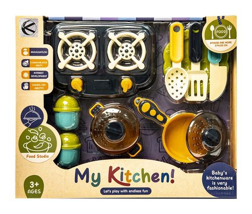 W skład zestawu wchodzą plastikowe przybory kuchenne oraz produkty, będące imitacjami wyposażenia prawdziwej kuchni. Produkt wykonany jest z wysokiej jakości plastiku, zapewnia długie użytkowanie. Zabawka idealnie nada się na prezent dla małego kucharza i zapewni wiele godzin wspaniałej zabawy.