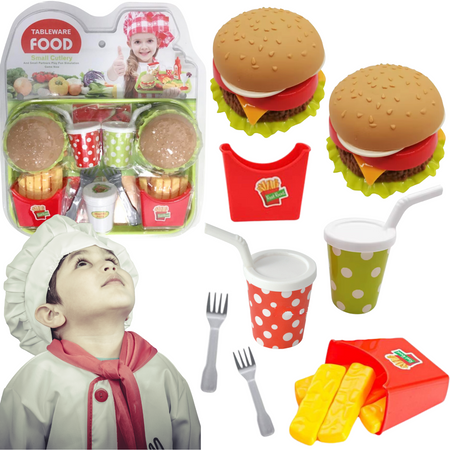 Rozwój kreatywności i wyobraźni: Dzięki różnorodności elementów, takich jak frytki, burgery czy napoje, dzieci mają możliwość wyobrażania sobie różnych scenariuszy i tworzenia własnych opowieści podczas zabawy. To sprzyja rozwijaniu kreatywności i wyobraźni, zachęcając dzieci do eksploracji i odkrywania nowych możliwości w świecie kulinarnej fantazji.