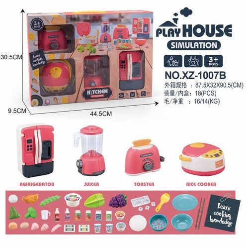 Zestaw ten zawiera: lodówkę, sokowirówkę, toster, urządzenie do gotowania ryżu oraz różne akcesoria.
