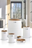 Pięć starannie dobranych elementów zaspokaja wszystkie podstawowe potrzeby związane z utrzymaniem łazienki w czystości i porządku. Kosz na śmieci z pedałem, dozownik na mydło, kubek na szczoteczki, mydelniczka oraz szczotka do WC - to niezbędne akcesoria, które ułatwiają codzienne czynności higieniczne.