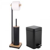 Zestaw łazienkowy łączy w sobie wysoką funkcjonalność, nowoczesny design i trwałe materiały. Czarna stal o matowym wykończeniu oraz naturalne elementy bambusowe tworzą spójny komplet, który doskonale uzupełni wystrój zarówno małej toalety, jak i większej łazienki.