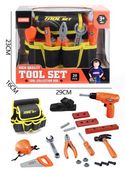 - pas na narzędzia, - regulowany pasek zapinany na klamerkę, - wkrętarko-wiertarka, - maska, - piła, - obcęgi, - śrubokręt, - młotek, - wkrętak krzyżakowy, - wiertło, - bit płaski, - klucz oczkowo – płaski, - 3 x nakrętka, - 3 x śruba, - 3 x drewienko do wkręcania. |