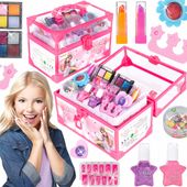 Ten wyjątkowy zestaw make up w eleganCkim kuferku zawiera bogate wyposażenie - 2 lakiery do paznokci, 2 pomadki, 2 błyszczyki, 4 cienie do powiek, 4 kolory brokatu w żelu, tipsy oraz ozdoby na paznokcie. Wszystkie elementy zostały starannie dobrane, aby zapewnić nieskończone możliwości stylizacyjne i godziny fascynującej zabawy.