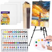 Ten wysokiej jakości zestaw malarski oferuje wszystko, czego potrzebuje zarówno doświadczony artysta, jak i początkujący. Bogata zawartość zestawu, obejmująca 24 farby akrylowe, 3 płótna bawełniane, zestaw 10 precyzyjnych pędzli oraz paletę i solidną sztalugę aluminiową, gwarantuje pełną swobodę twórczą i niezrównane doznania podczas malowania.