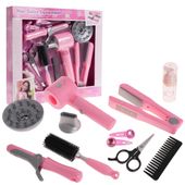 - suszarka do włosów, - wymienna nasadka do suszarki z dyfuzorem, - wymienna nasadka do suszarki z koncentratorem, - prostownica do włosów, - lokówka do włosów, - grzebień, - szczotka, - nożyczki, - butelka, - 2 x spinka do włosów. |