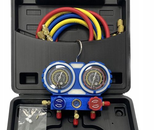 Zestaw manometrów R32 R410A R134A z wężami i walizką to wysokiej jakości narzędzie, które zapewnia precyzyjne i dokładne pomiary ciśnienia w instalacjach chłodniczych. Wykonany z trwałych materiałów, gwarantuje długotrwałe i bezproblemowe użytkowanie.