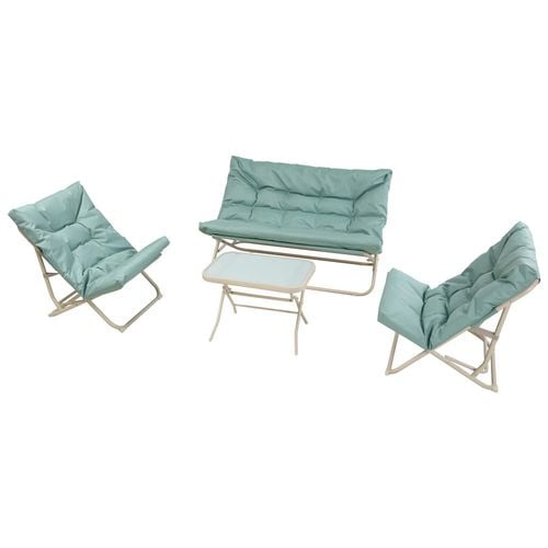 Stolik w zestawie kempingowym posiada szklany blat, który dodaje elegancji i jest łatwy do czyszczenia. Siedziska wykonane z poliestru wypełnione zostały gąbką, co zapewnia komfort nawet podczas długiego wypoczynku. Dzięki kompaktowym wymiarom i lekkiej konstrukcji, zestaw mebli kempingowych jest idealnym towarzyszem każdej wyprawy na łono natury.