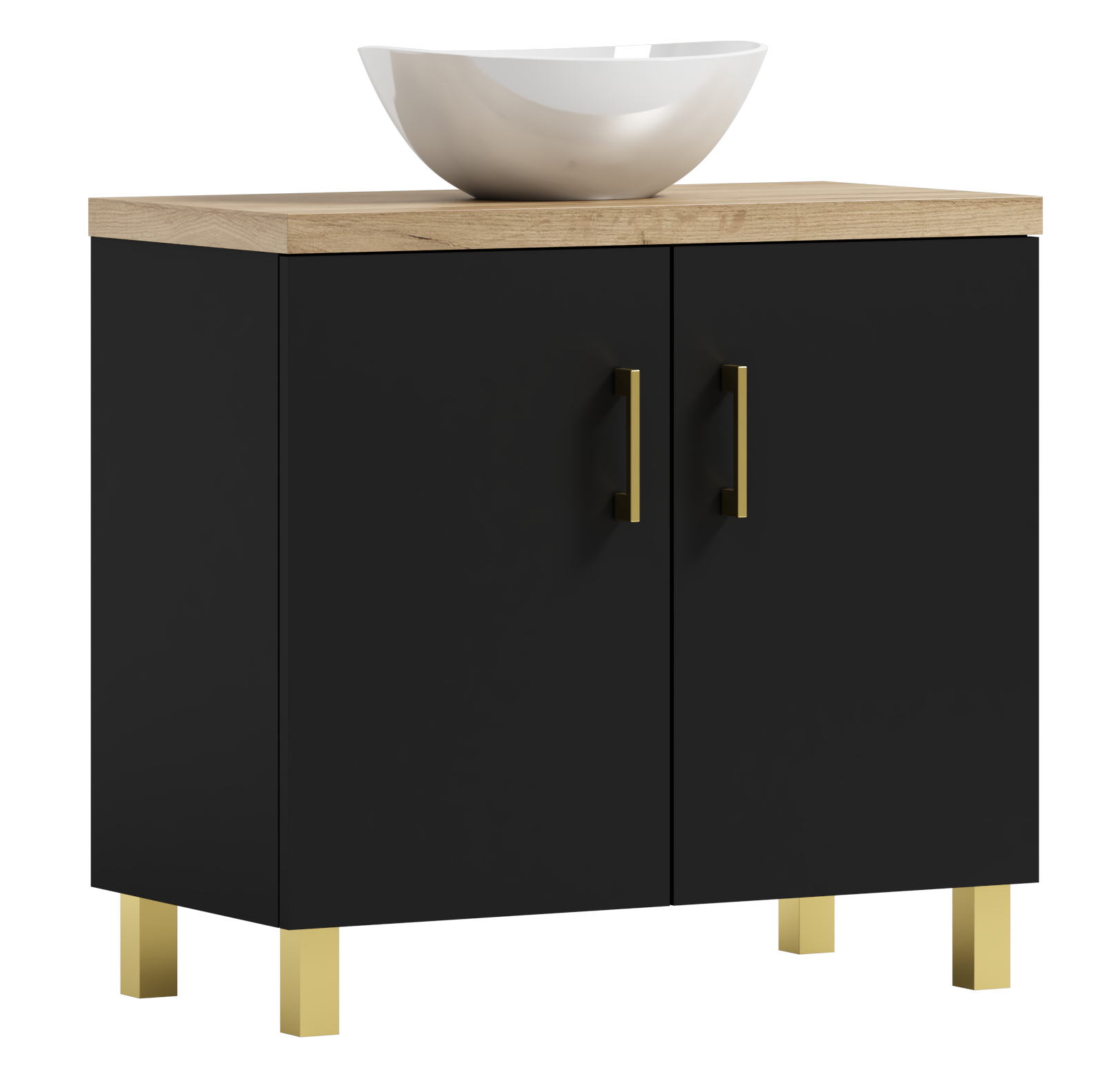 Praktyczne uchwyty – Szafka wyposażona jest w uchwyty w kolorze czarnym, które podkreślają nowoczesny charakter mebli.