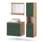 Zestaw Mebli Łazienkowych 90cm Szafka Z Umywalką I Lustro Dąb Wotan Zieleń