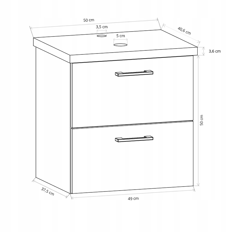 Praktyczność i komfort: Zestaw wyposażony jest w dwie pojemne szuflady z cichym domykiem, a jedna z nich ma specjalne miejsce na syfon, co zapewnia łatwość w montażu.