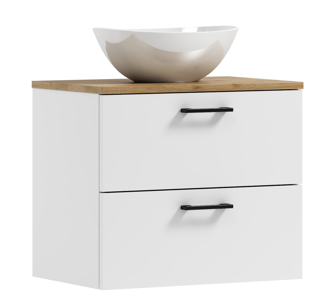 ✅ Dwie pojemne szuflady z cichym domykiem, w tym jedna z miejscem na syfon, idealne do przechowywania akcesoriów łazienkowych.