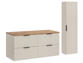 SET-ADC B WOTAN 120CM HC to elegancki i funkcjonalny zestaw składający się z blatu, szafki wysokiej oraz dwóch szafek pod umywalkę. Został stworzony jako część kolekcji Adel Cashmere, co gwarantuje wysoką jakość i stylowy design. Zestaw ma szerokość 120 cm i głębokość 46 cm, co sprawia, że doskonale zmieści się w każdej łazience.
