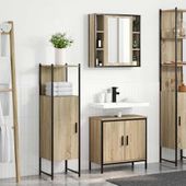 Ten nowoczesny zestaw mebli łazienkowych zamienia każdą łazienkę w elegancką przestrzeń. Dzięki gładkim liniom i minimalistycznemu stylowi, poprawia ogólny klimat Twojej łazienki. Neutralne brązowe kolory pasują do każdej palety, dając niezwykłe połączenie stylu i funkcjonalności. To idealne rozwiązanie dla tych, którzy pragną ładnie zorganizowanej i wygodnej łazienki. Materiały: Wykonany z wysokiej jakości drewna inżynieryjnego, ten zestaw nie tylko ładnie się prezentuje, ale też obiecuje długotrwałe użytkowanie. Materiał świetnie znosi wilgoć, więc sprawdzi się w mokrych warunkach łazienkowych i sprawia, że meble wyglądają świetnie przez długi czas. W skład zestawu wchodzą: Zestaw składa się z trzech kluczowych elementów, stworzonych z myślą o przechowywaniu. Każda jednostka ma zlicowane drzwi z nowoczesnym designem, suitable for co ułatwia dostęp. Półki wewnątrz oferują mnóstwo miejsca na niezbędne akcesoria, kosmetyki i inne. Design i funkcjonalność: Dzięki nowoczesnemu wyglądowi zestaw ma proste linie i przyjemny dla użytkownika układ. Łatwo dostępne przegródki są idealne do codziennego użytku. Dodatkowo, uchwyty na drzwiach dodają stylu i ułatwiają korzystanie z zestawu, poprawiając zarówno wygląd, jak i funkcjonalność. Zalecane zastosowania: Najlepiej sprawdzi się w łazienkach, łącząc użyteczność z estetyką, pomagając Ci zorganizować codzienne niezbędniki. To świetny wybór do mieszkań, domów lub łazienek gościnnych, będąc wyjątkowym dodatkiem tam, gdzie wygląd i praktyczność mają znaczenie. Pielęgnacja i konserwacja: Aby utrzymać meble w dobrym stanie, wystarczy regularnie je odkurzać suchą szmatką. Po prostu użyj miękkiej szmatki, aby usunąć kurz i brud, bez potrzeby intensywnego czyszczenia. Unikaj mocnych chemikaliów, aby nie uszkodzić powłoki, suitable for co pomoże im zachować świeży i funkcjonalny wygląd przez długi czas.