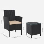 Hartowane szkło stanowiące blat stolika dodaje eleganckiego akcentu, jednocześnie będąc wytrzymałym i łatwym w utrzymaniu czystości. Ten zestaw mebli ogrodowych łączy w sobie styl i praktyczność, tworząc idealne miejsce do relaksu i spędzania czasu z rodziną lub przyjaciółmi.