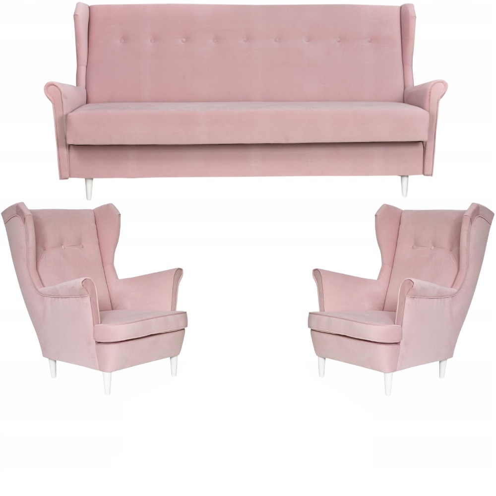 ✅ Zestaw wypoczynkowy składający się z dwóch foteli i wersalki, tworzy spójny i elegancki komplet, który zapewnia przestronne miejsca do siedzenia, idealne dla rodziny lub gości;