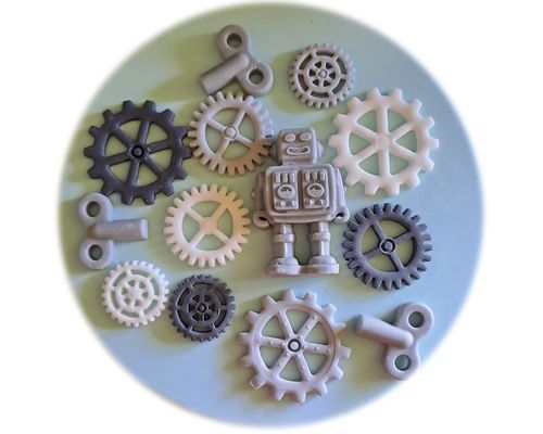 W skład zestawu wchodzi figurki robota oraz zestaw kół zębatych i kluczy, które można dowolnie aranżować na torcie. Elementy zestawu charakteryzują się szczegółowym wykonaniem oraz atrakcyjnym designem, co sprawia, że torty z ich użyciem będą wyglądać profesjonalnie i efektownie.