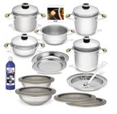 Odkryj smak zdrowia i elegancji z zestawem naczyń Zepter Z-Line Universal PLUS! Nasz 24-częściowy luksusowy zestaw to idealne rozwiązanie dla każdego, kto pragnie gotować zdrowe, niskotłuszczowe potrawy, nie rezygnując przy tym z wykwintnego stylu. Zestaw, wykonany z najwyższej jakości metalu 316L, jest nie tylko piękny, ale i trwały, co czyni go idealnym towarzyszem w Twojej kuchni przez długie lata.
